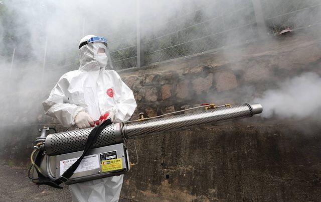 2022년 7월 4일 오후 서울 은평구 갈현로 인근 주택가에서 은평구청 관계자들이 러브버그 관련 긴급 방역에 나서고 있다 / 뉴스1