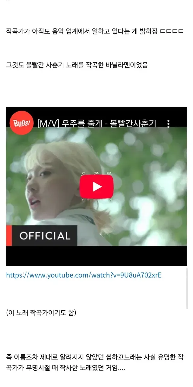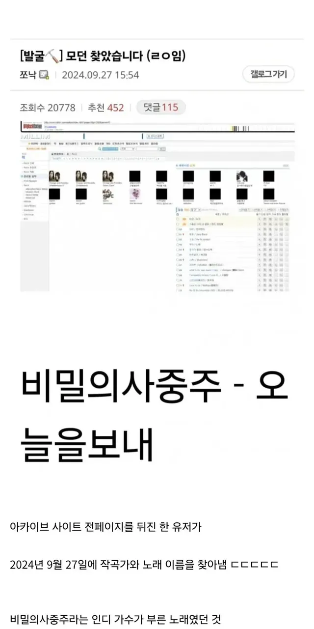 인디가수 음원 사이트인 밀림 닷컴에 20년전에 올라왔던 노래… 2008년 폐쇄되었지만 아카이브 사이트를 뒤져서 찾았다고 함 ㄷㄷ