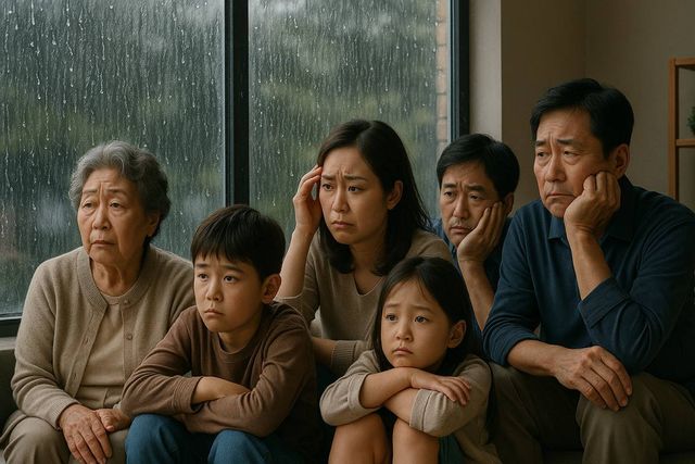 계속되는 주말 흐린 날에 절망하는 사람들. 기사 내용을 바탕으로 AI가 생성한 자료사진.
