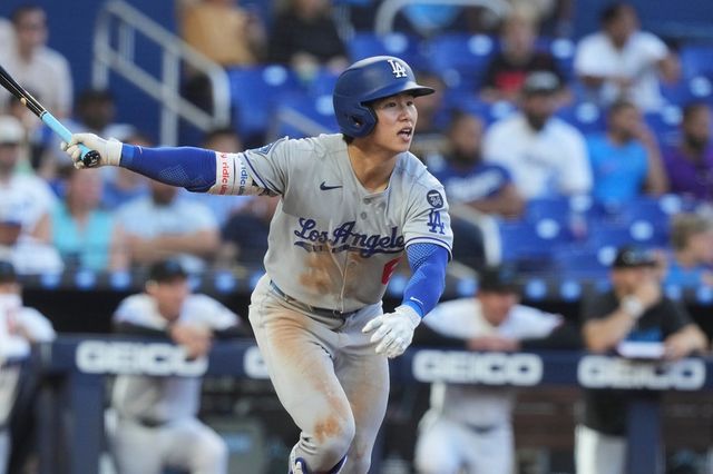 김혜성(LA 다저스)은 8일(이하 한국시간) 미국 플로리다주 마이애미 론디포 파크에서 열린 2025 미국 메이저리그(MLB) 마이애미 말린스와의 원정경기에 8번 타자 겸 중견수로 선발 출전했다. 4타수 2안타 1타점 1득점을 선보였다.