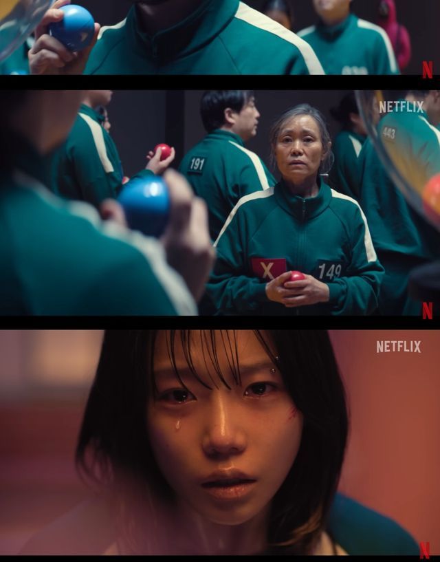 순식간에 두 팀으로 나뉜 참가자들 사이, 시즌2 주역들의 공 색이 일부 공개돼 충격을 안긴다. 특히 아들 용식(양동근)과 엄마 금자(강애심)은 다른 색의 공을 뽑아 팀이 나뉘게 되어 잔인한 서사를 예고한다.
