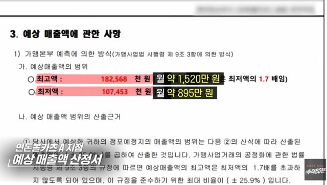 1. 가맹업주 모집할때 월 매출 3000만원으로 홍보함