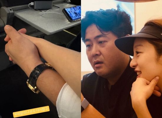 사진 속에는 KTX 기차 안에서 두 손을 꼭 맞잡은 황보라 부부의 모습이 담겨 있다.