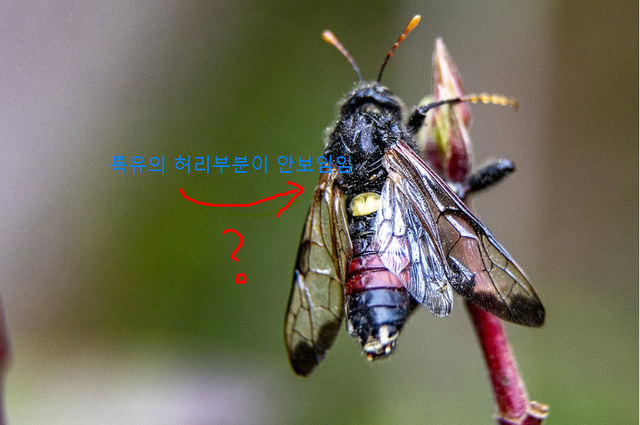 우리가 알고있는 벌 특유의 개미허리부분이 없는것이 특징입니다.