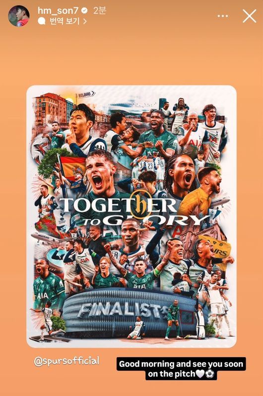 손흥민은 지난 9일 토트넘의 유로파리그 4강 2차전 승리 이후, 자신의 사회관계망서비스(SNS)를 통해 결승 진출을 축하하는 게시물을 공유하면서 "Good morning and see you soon on the pitch(좋은 아침입니다. 곧 경기장에서 만나요)"라는 짧지만 의미심장한 문구를 남겼다.