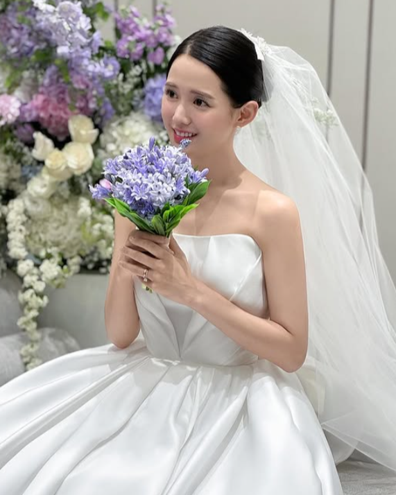 공개된 사진에는 순백의 드레스를 입고 면사포를 쓴 채 보라색 꽃을 들고 있는 새 신부 남보라의 모습이 담겨 있어 눈길을 끈다.