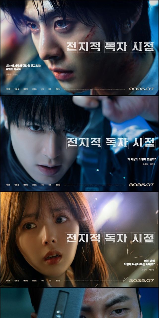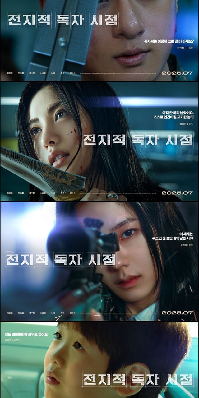 공개된 캐릭터 포스터는 개성 강한 캐릭터들의 매력을 오롯이 담아낸 배우들의 완벽한 싱크로율과 압도적인 존재감으로 눈길을 끈다. 먼저 10년 이상 연재된 소설의 유일한 독자였던 ‘김독자’(안효섭)의 강렬한 눈빛이 시선을 사로잡는다. ‘김독자’는 “나는 이 세계의 결말을 알고 있는 유일한 독자다”라는 대사를 통해 오직 혼자만이 알고 있는 소설 속 전개를 어떻게 활용할지에 대한 호기심을 이끈다. 10년 넘게 연재된 소설의 주인공 ‘유중혁’(이민호)의 “왜 세상이 이렇게 됐을까?”라는 대사는 현실이 되어버린 소설 속 세계가 스크린에 어떻게 펼쳐질지에 대한 기대감을 더욱 고조시킨다. ‘김독자’와 함께 소설이 현실이 된 순간을 맞닥뜨린 동료 ‘유상아’(채수빈)는 “여긴 매일 이렇게 싸워야 하는 거예요?”라며 당황함을 감추지 못한다. 거짓말처럼 눈 앞에 펼쳐진 소설 속 세계, 당황은 잠시였고 이내 살아남기 위해 ‘독자’와 함께 한 번도 상상해 보지 못한 적들과 싸우기 시작한다. 강인한 힘을 지닌 ‘김독자’의 동료 ‘이현성’(신승호)은 “독자 씨는 어떻게 그런 걸 다 아세요?”라고 의아해하지만 점점 ‘독자’를 신뢰하며 ‘독자’ 일행의 든든한 방패가 되어준다. 정의를 위해 싸우는 ‘김독자’의 동료 ‘정희원’(나나)의 표정 역시 심상치 않다. “아직 한 마리 남았어요. 스스로 인간이길 포기한 놈이” 라며 누군가를 강렬한 눈빛으로 응시하는 그녀가 어떤 일을 겪어온 것인지, 앞으로 어떻게 대처할 것인지 기대하게 한다. ‘유중혁’을 사부라 부르며 따르는 고등학생 ‘이지혜’(지수)는 ‘독자’ 일행 앞에 나타나 “이 세계는 무조건 센 놈만 살아남는 거야”라고 일침을 가한다. 감정을 읽을 수 없는 차가운 얼굴을 지닌 ‘지혜’의 사연은 무엇인지 궁금증을 유발한다. 곤충과 교감하며 ‘독자’ 일행의 여정에 함께 하는 소년 ‘이길영’(권은성)도 귀여운 존재감을 뽐낸다. “저도 괴물들이랑 싸우고 싶어요”라며 씩씩하게 외치는 ‘길영’의 예상치 못한 활약 역시 기대해도 좋을 것이다.