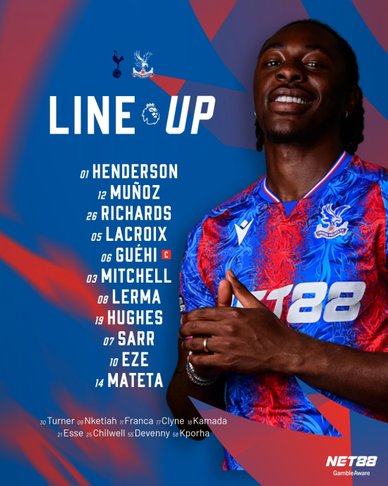 원정팀 팰리스는 3-4-2-1 전형으로 맞섰다. 딘 핸더슨 골키퍼를 비롯해 막상 라크루아, 마크 게히, 크리스 리차즈가 백3를 구성했다. 중원은 예페르손 레르마, 윌 휴즈가 지켰고 측면에 타이릭 미첼, 다닌엘 무뇨스가 나섰다. 2선 공격진에 이스마일라 사르, 에베리치 에제, 최전방에 장필립 마테타가 나와 득점을 노렸다.