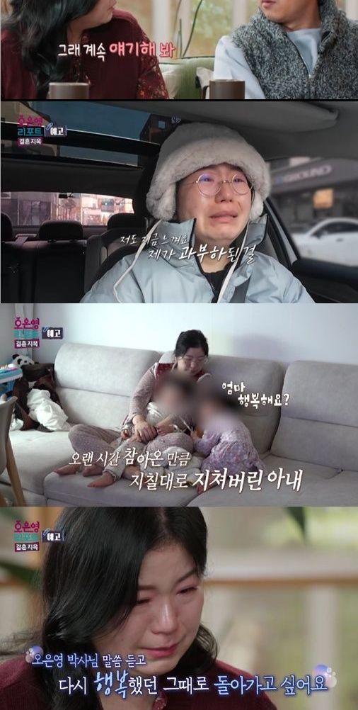 아내는 ‘아이들을 통제해야 하는 것 아니냐’는 제작진의 질문에도 본인은 방치가 아닌 방목형으로 자율적인 육아를 하는 것이고 진짜 위험한 상황에서는 자신의 몸이 먼저 반응하기 때문에 문제가 없다고 주장한다. 아내 특유의 무덤덤 육아(?)를 지켜보던 오은영 박사는 오은영 리포트 사상 처음으로 ‘냉수 한 잔 마시고 이야기를 시작하겠다’고 탄식한다.