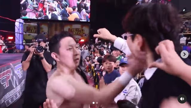장성규는 12일 자신의 SNS에 "43살에 뺨을 맞다니.. #pws #레슬네이션 #시호"라는 글을 올렸다.
