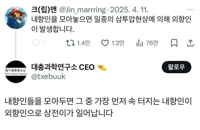 그나마 외향 비율이 높은 내향인 외향인으로 변함