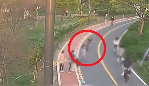 이 영상은 지난달 20일 오후 6시 40분쯤 여의도 한강공원 자전거 도로에서 촬영된 것으로, 영상 속에는 한 여성이 도로를 횡단하려다 마주 오는 자전거를 발견하지 못하고 부딪쳐 넘어지는 모습이 담겼다.