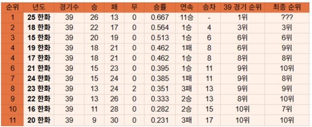 암흑기 이후 한화는 시즌 초반에도 날아다녔던적이 없는데스