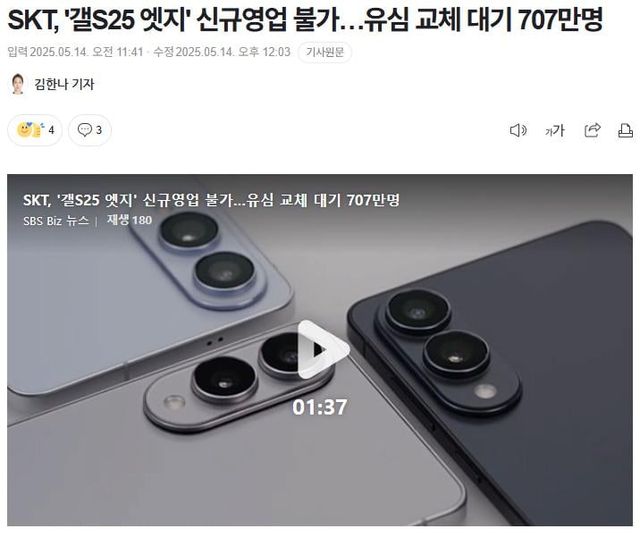SKT, '갤S25 엣지' 신규영업 불가…유심 교체 대기 707만명