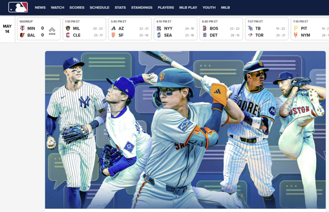 한국시간으로 15일 새벽, 미국 메이저리그(MLB)의 공식 홈페이지 MLB닷컴은 이정후를 메인 화면에 내세웠다. 애런 저지(뉴욕 양키스) 야마모토 요시노부(LA 다저스) 등 4명의 선수와 함께였지만, 이정후가 중앙에 가장 크게 조명됐다. 무슨 이유에서였을까.