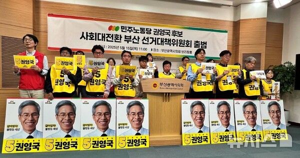 진보진영이 연대한 민주노동당은 15일 오전 부산시의회 브리핑룸에서 '권영국 후보 사회대전환 부산 선거대책위원회' 출범식을 열었다.