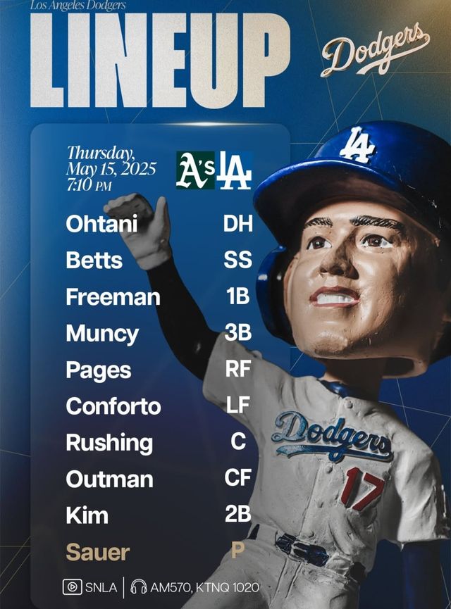 이날 다저스는 오클랜드전에서 오타니 쇼헤이(지명타자)~무키 베츠(유격수)~프레디 프리먼(1루수)~맥스 먼시(3루수)~앤디 파헤스(우익수)~마이클 콘포토(좌익수)~달튼 러싱(포수)~아웃맨(중견수)~김혜성(2루수)으로 이어지는 라인업을 내세웠다.