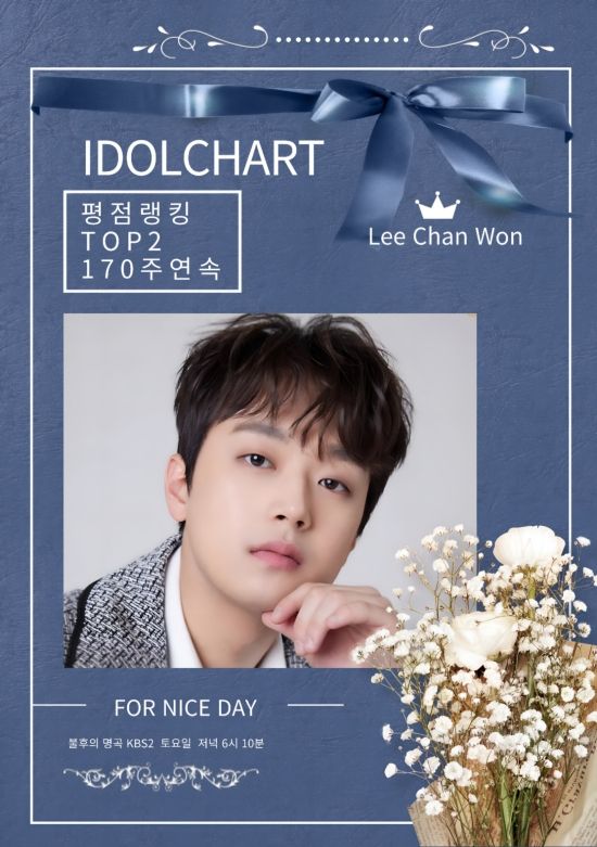 최근 아이돌차트는 이찬원이 5월 2주 차 평점 랭킹에서 109,729표를 받아 2위에 올랐다고 밝혔다.