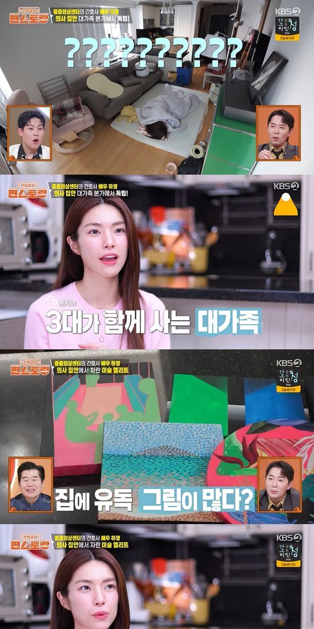 이날 '중증외상센터'에서 간호사 천장미 역을 맡아 열연을 펼쳤던 하영이 등장했다. 붐은 "작품에서 간호사 디테일을 잘 살렸다. 따로 조사를 해보니까 아버지랑 언니가 실제로 의사 선생님이고, 어머니는 간호사셨다"고 밝혔다.