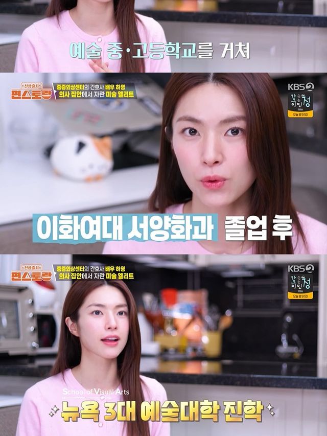 원룸 보금자리에서 눈길을 끈 것은 곳곳에 놓인 감각적인 느낌의 그림들이었다. 알고 보니 모두 하영이 직접 그린 것이었다. 미술을 오래 했다는 그는 "예술 중학교, 고등학교를 나와서 이화여대 서양학과를 졸업했다"며 남다른 스펙을 공개해 눈길을 끌었다.