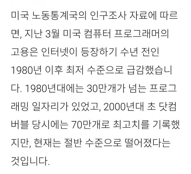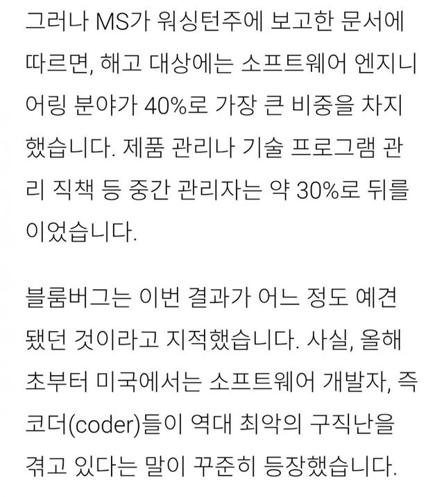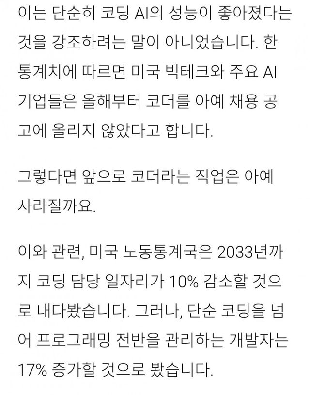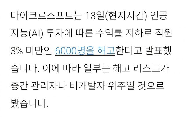 MS가 최근 6000명가량 대규모 해고를 했는데 그중 대부분이 개발자로 ai에 인한 인력감축으로 추정된다함
