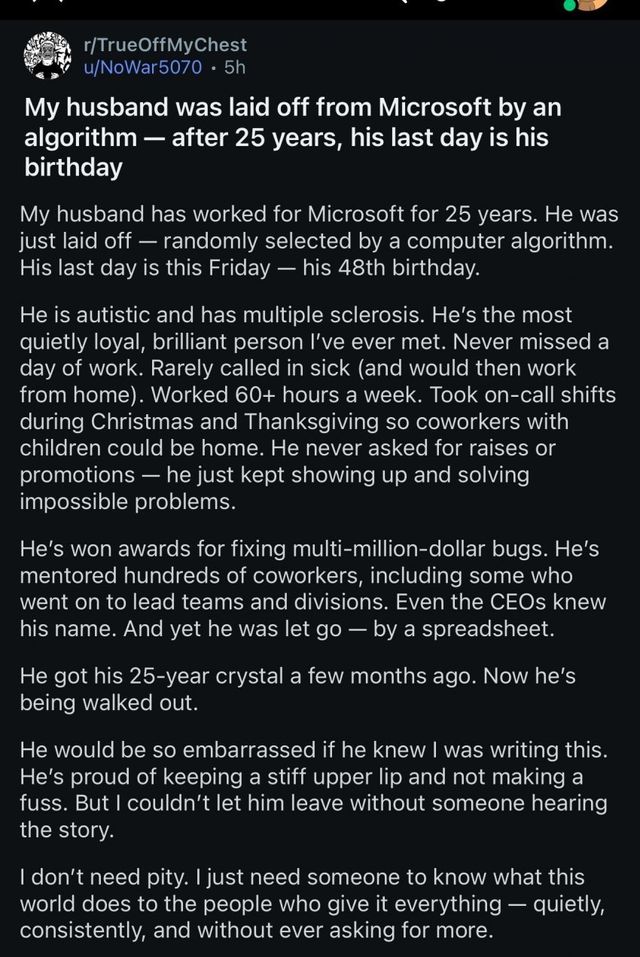 레딧에 올라온 해고 당한 남편의 부인이 쓴 글