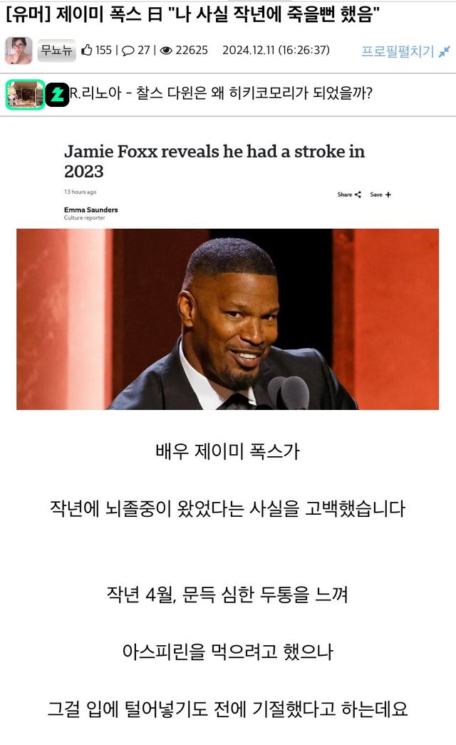 제이미 폭스가 갑자기 생사를 오락가락 했다는 뉴스가 있었음