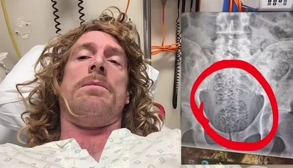 침대에 웅크린 채 극심한 고통을 호소하던 마이클은 카메라에 "엑스레이 검사 결과 몸속에 놀라운 양의 커피 원두가 여전히 남아있는 것을 확인했다"고 전했다.