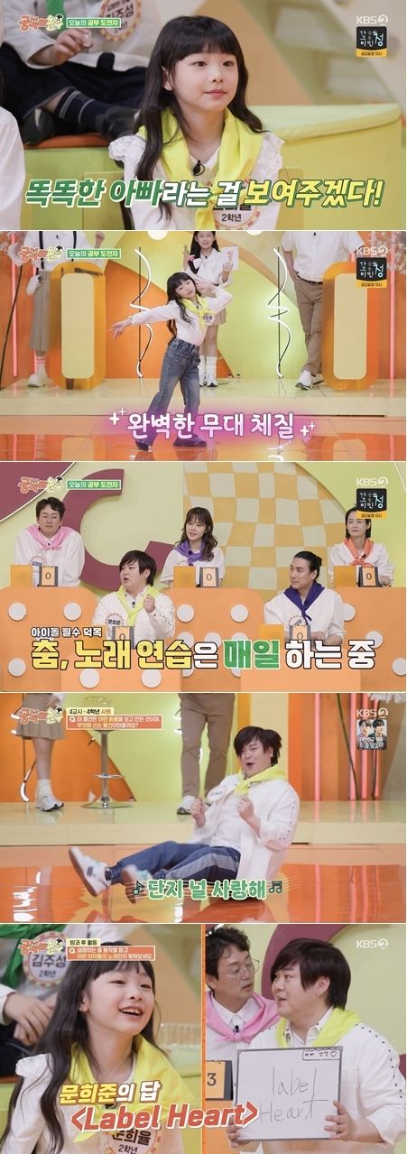 19일 방송된 KBS 2TV '공부와 놀부' 8회에서는 '1세대 아이돌' H.O.T.의 문희준이 딸 희율과 '천상 아이돌 부녀 DNA'를 뽐냈다.