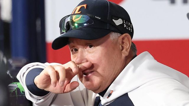 지난달 11일 서울 구로구 고척스카이돔에서 열린 '2025 신한 SOL뱅크 KBO리그' 한화 이글스와 키움 히어로즈의 경기에서그라운드를 바라보고 있는 한화 김경문 감독의 모습. / 뉴스1
