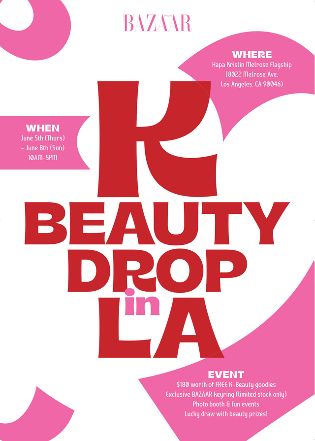 오는 6월 5일부터 8일까지 진행되는 첫 번째 〈BAZAAR K-BEAUTY DROP 〉은 LA의 뷰티와 패션, 문화의 중심지이자 MZ들이 모이는 핫 플레이스 멜로즈 애비뉴에서 진행된다. 멀리서도 눈에 띄는 핑크빛 하파크리스틴 매장에서 K-뷰티 브랜드의 뛰어난 제품력과 그 인기를 직접 경험해 볼 것.