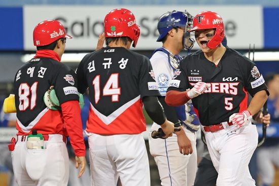 KIA는 5회 초 무사 3루 기회에서 김석환의 유격수 땅볼 타점 때 3루 주자 오선우가 홈을 밟아 4-4 균형을 다시 맞췄다.