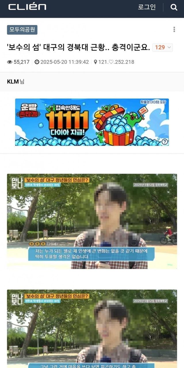 [클리앙] '보수의 섬' 대구의 경북대 근황.. 충격이군요