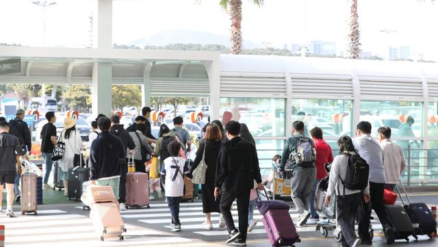 제주국제공항에 도착한 관광객들의 모습. / 뉴스1
