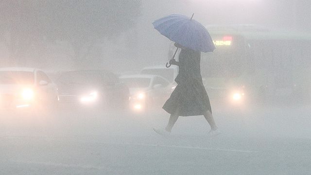 한 시민이 쏟아지는 장맛비에 우산을 쓰고 이동하고 있다. 기사 이해를 돕기 위한 자료 사진 / 연합뉴스