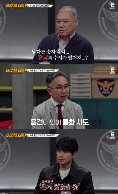 지난 23일 방송된 티캐스트 E채널 '용감한 형사들4'(연출 이지선) 35회에는 대전유성경찰서 강력2팀장 장현수 경감과 과학수사대(KCSI) 윤외출 전 경무관, 김진수 경감이 출연해 직접 해결한 수사 일지를 펼쳤다.