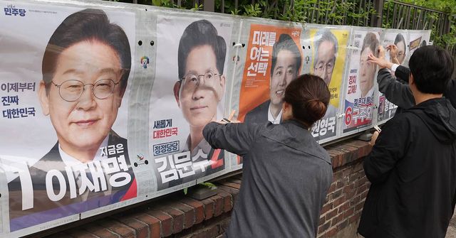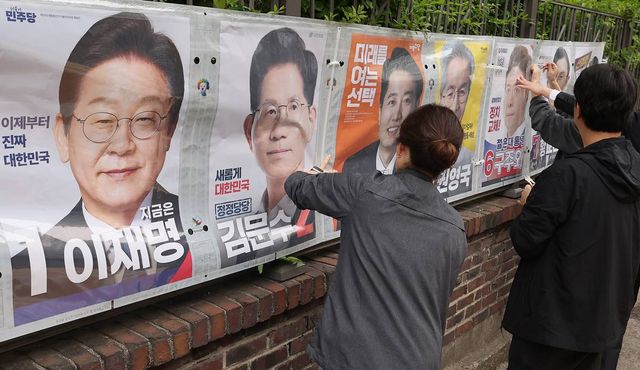 서울시선거관리위원회 관계자들이 지난 15일 오전 서울 종로구 예술가의집 담장에 제21대 대통령선거 선거벽보를 부착하고 있다. 선거벽보는 이날부터 전국 8만 2900여 곳에 첩부된다 / 뉴스1