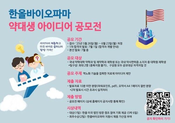 제약바이오기업 한올바이오파마가 제약바이오업계 미래 인재 양성을 위해 '제3회 한올바이오파마 약대생 아이디어 공모전'을 진행한다.