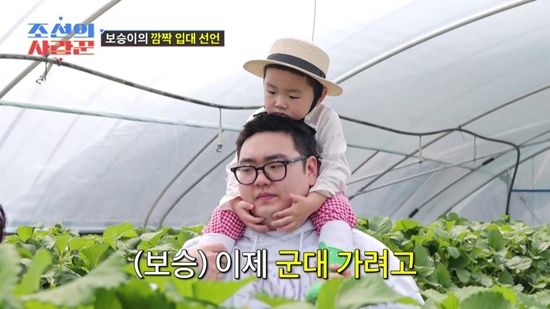지난 26일 방송된 '조선의 사랑꾼'에서는 드디어 날아온 입영통지서를 숨긴 손보승이 아들, 그리고 엄마 이경실과 3대 동반 논산 딸기 체험을 떠났다. 한참을 딸기 따기에 매진하던 중 손보승은 엄마에게 "6월 입영통지서가 나왔다"고 깜짝 소식을 전했다.