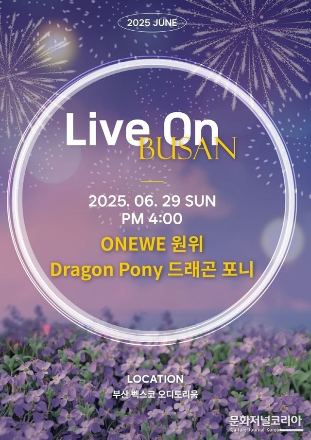 ㈜바른손이 주최하고 ㈜빅쇼이엔엠이 주관하는 'LIVE ON 부산' 원위, 드래곤포니 옴니버스 공연은 오는 6월 29일 일요일 오후 4시 부산 벡스코 오디토리움에서 펼쳐지며, 다채로운 음악적 색깔을 지닌 두 밴드의 만남으로 부산 팬들에게 잊지 못할 감동과 즐거움을 선사할 것으로 기대를 모으고 있다.