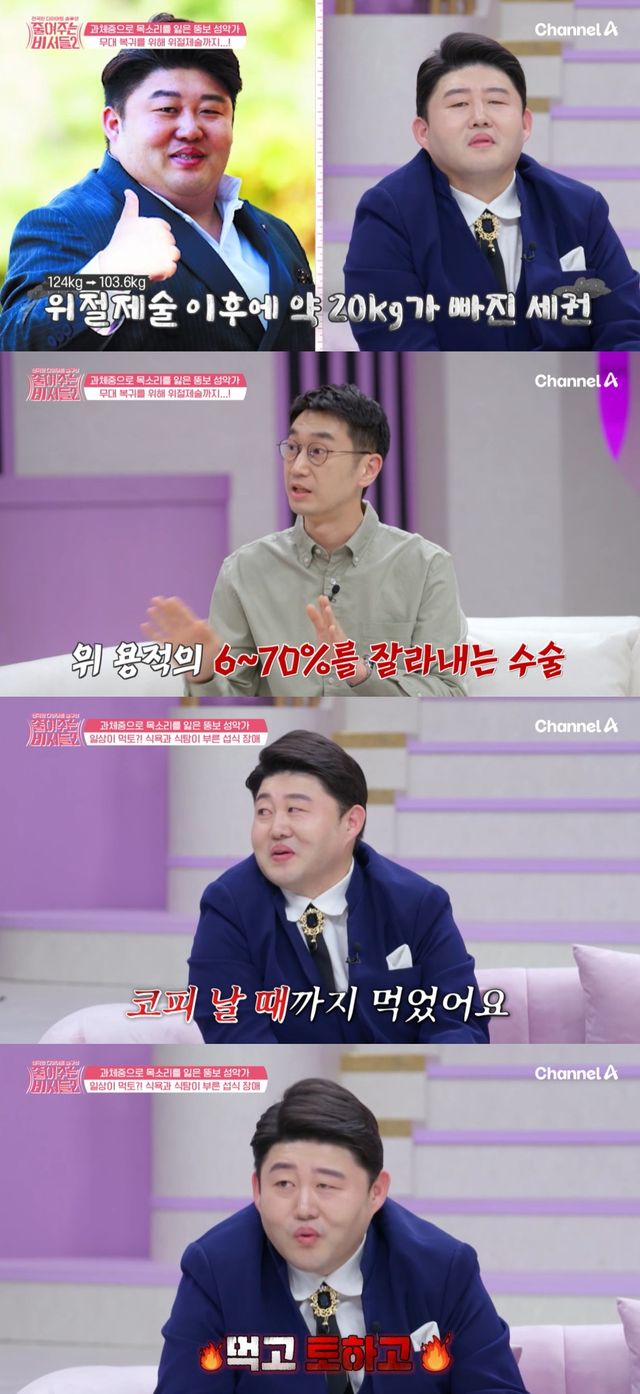 "코피 날 때까지 먹었다"는 그는 "그래서 위절제술을 했는데 식탐과 식욕이 줄지 않았다. 먹고 토하고를 반복했다. 일상이 반복됐다"며 좋지 않은 습관이 생겼음을 고백했다.