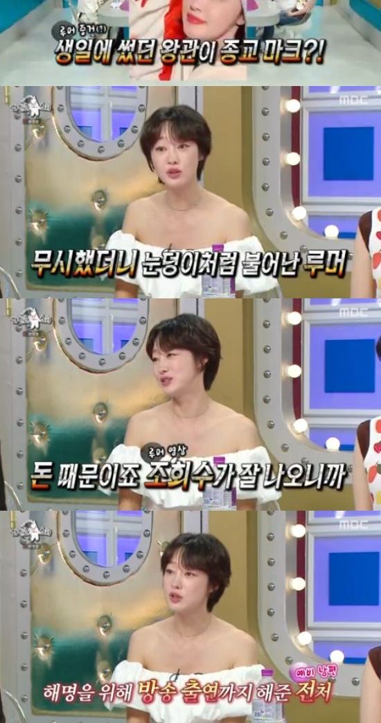 이에 "이제는 (불륜 루머 말고) 또 다른 루머들이 돈다. 가만히 있으니까 논란이 논란을 만들더라. 당당하고 떳떳하게, 나답게 정면돌파를 하는 것이 낫다고 생각이 들었다. 오늘 녹화장에도 남편과 함께 왔다"고 했다.