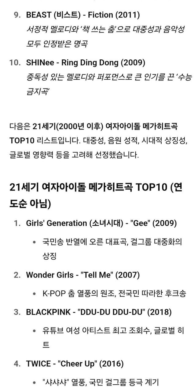 1위 소녀시대 Gee(2009)