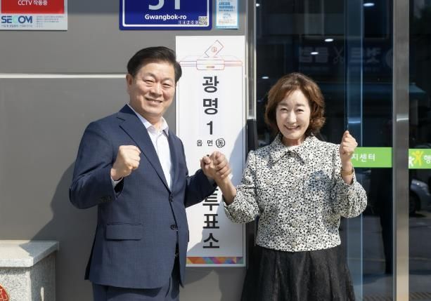 박승원 광명시장은 이날 오전 9시 광명1동 행정복지센터 내 사전투표소에 부인 신지희 여사와 함께 방문해 투표에 참여했다. 이 자리에서 박 시장은 “민주시민은 투표로 대한민국의 미래를 설정한다. 투표는 민주시대를 앞당기는 지름길”이라고 강조했다.