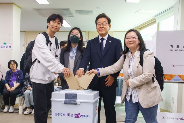 한편 이재명 후보의 배우자인 김혜경 여사는 사전투표 첫날인 29일 오전 부산시 동구 초량2동 주민센터에서 사전투표를 마친 뒤 엄지손가락을 치켜든 투표 인증 사진을 찍기도 했다.