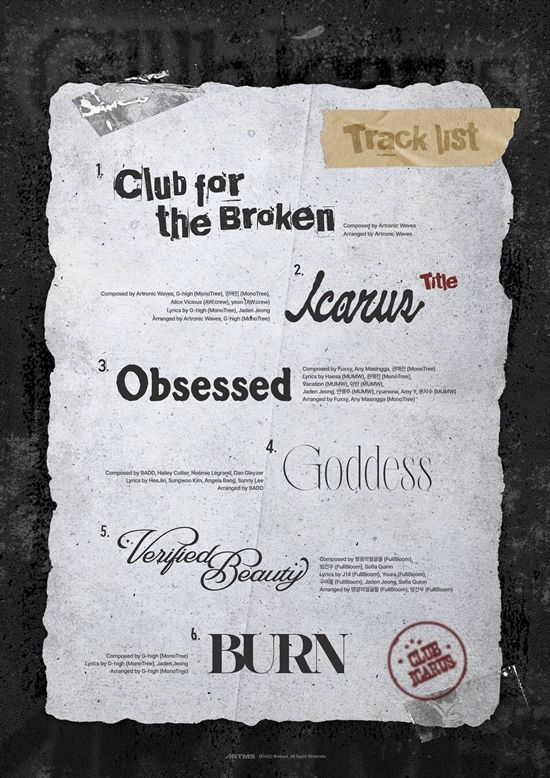 트랙리스트에 따르면 '클럽 이카루스'에는 타이틀곡 '이카루스(Icarus)'를 비롯해 '클럽 포 더 브로큰(Club for the Broken)', '옵세스드(Obsessed)', '갓디스(Goddess)', '버리파이드 뷰티(Verified Beauty)', '번(BURN)'까지 총 여섯 트랙이 수록된다. 특히 이번 앨범은 상처 받은 이들을 위한 비밀스런 클럽 이야기를 그린다.