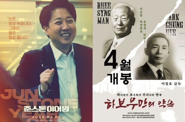 3월에는 이준석 개혁신당 대선 후보를 다룬 다큐멘터리 ‘준스톤 이어원’이 개봉했으며, 4월에는 이승만·박정희 전 대통령의 발자취를 조명하는 다큐멘터리 영화 ‘하보우만의 약속’이 극장가를 찾았다.