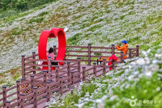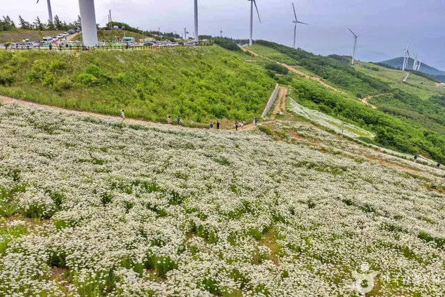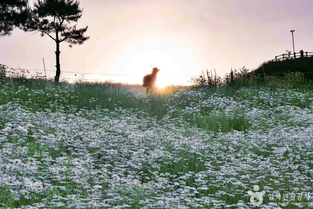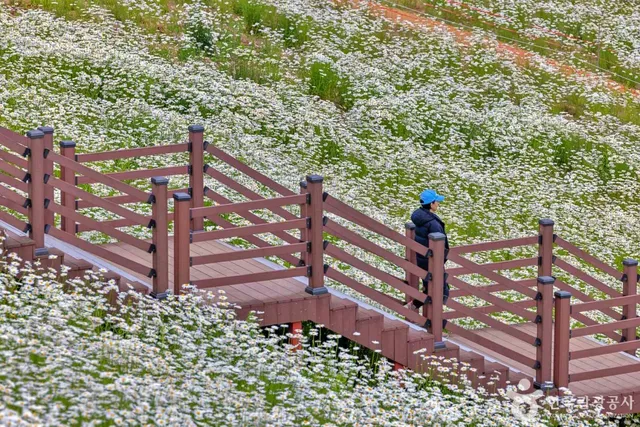 6월에는 샤스타데이지가 만개하여 커다란 초원이 순백의 꽃으로 물들어 장관을 이룹니다. 이 꽃은 ‘계란프라이꽃’이라는 엉뚱한 별명으로도 알려져 있으며, 그 단순하고 청량한 매력으로 가족 방문객과 감성을 찾는 여행자들을 끌어들입니다.