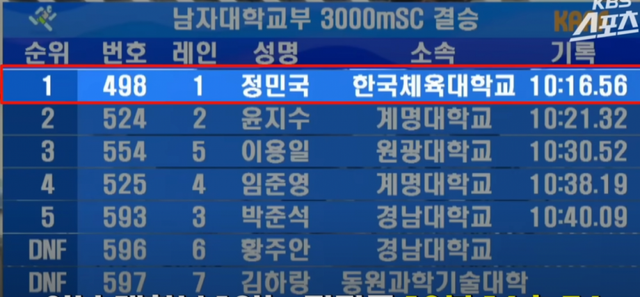 보면 알겠지만, 남자대학생들이 순위 싸움을 할 때 본인은 순위에 연연하지 않고 기록을 위해서 뛴 걸 알 수 있음