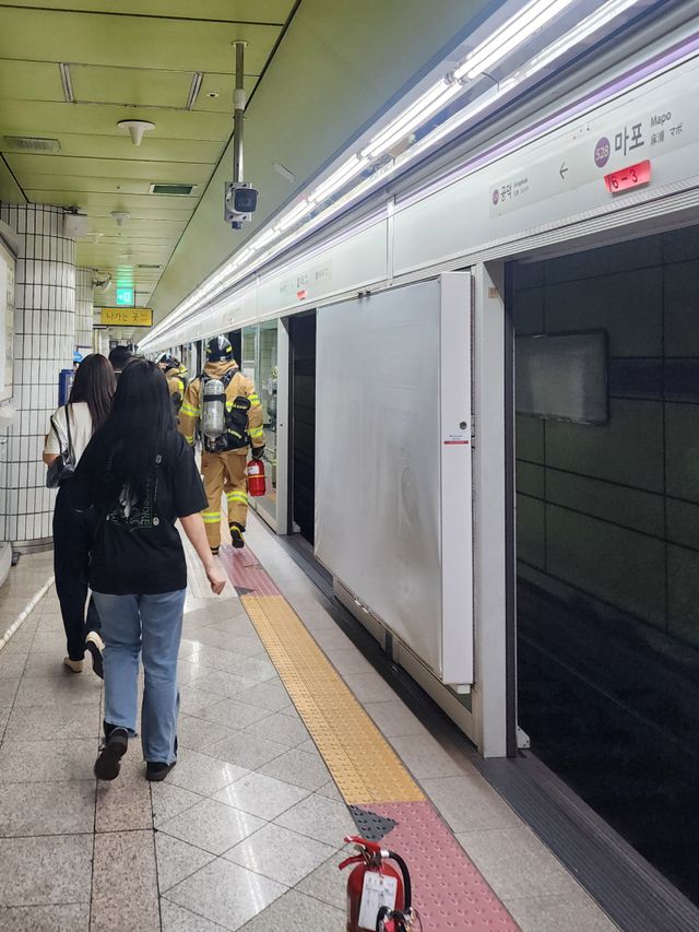 소방 당국은 장비 74대와 인력 263명을 동원해 화재를 진압했다. 승객들은 터널로 대피했다. 여의도역∼애오개역 사이 중단됐던 열차 운행은 복구 작업이 끝나 재개됐다.